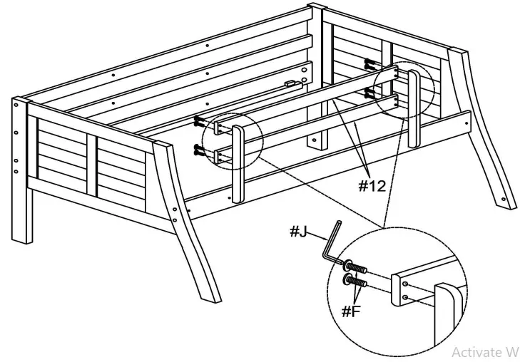 Align upper bunk to lower bunk, then secure by using bolts (#H). #5