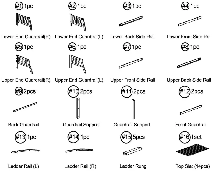 - Read and follow the information on the WARNINGS shown on the end structure of the upper bunk and on the carton.
