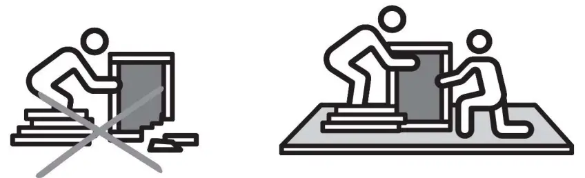 - Periodically check and ensure that the guardrails, ladder, handle and other components are in their proper position, free from damage, and that all connectors are tightened and secured.