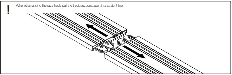 - Make up the race track by carefully identifying the different track sections in the track diagram from illustrated contents list. Push the track sections firmly together in a straight line.