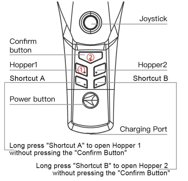 hopper 1 without pressing the CONFIRM Button. Shortcut B is for hopper 2.