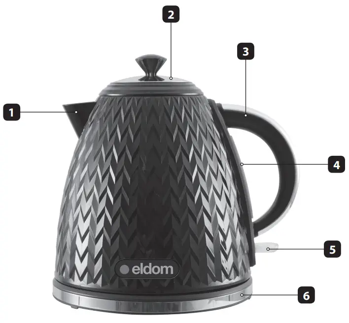 - Never use the kettle if the supply cord is damaged. If found damaged in any way, consult the producer’s authorized service centre. The list of service centres is to be found in the appendix and on www.eldom.eu.