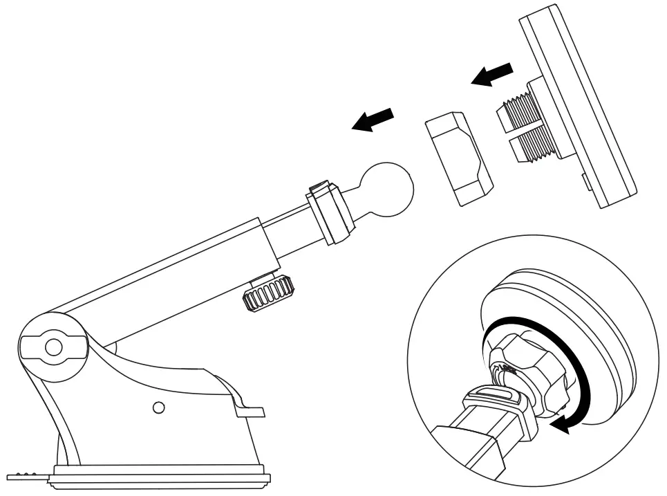 ❶ Adjust the angle of the mount and tighten the joint ball nut